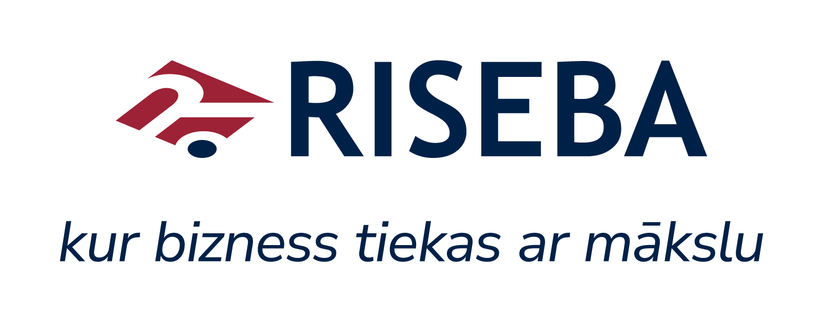 The logo, or RISEBA symbolism, consists of a diamond with the letter “R” in the center, the initials of RISEBA, and the name of the university in Latvian – Biznesa, mākslas un tehnoloģiju augstskola RISEBA, or in English – RISEBA University of Applied Sciences.