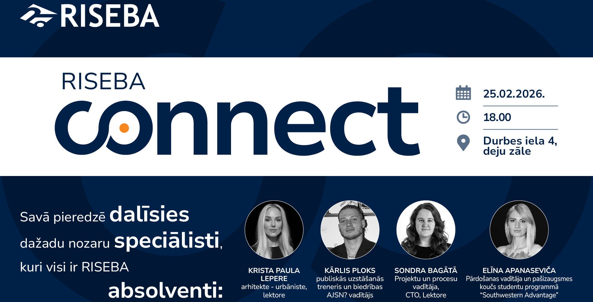 Reģistrējies pasākumam šeit!Pasākums tiek rīkots sadarbībā ar RISEBA Studentu Pašpārvaldi, stiprinot kopienas garu un veidojot vidi, kur studenti, absolventi un uzņēmēji var satikties, dalīties idejās un iedvesmot viens otru.