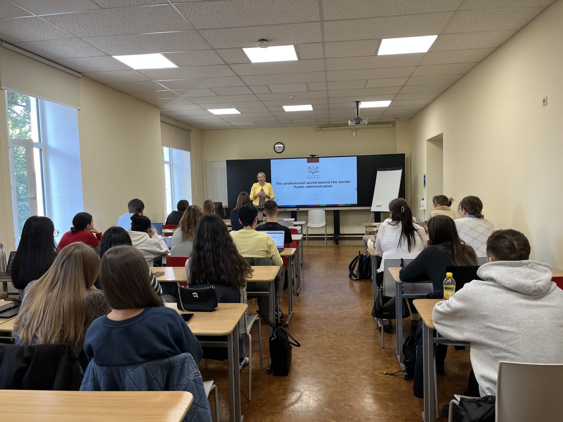 Varbūt kāds no jauniešiem pats strādās valsts pārvaldē, bet noteikti vairāki no viņiem jau kā aģentūru darbinieki īstenos valsts pārvaldes projektus, tāpēc studentiem bija svarīgi iepazīt Latvijas ierēdņu darbu – sarunās gan ar Valsts kancelejas speciālistiem, gan ar Tiesībsardzes komandas pārstāvjiem, kas rūpējas, lai valsts pārvaldē tiktu nodrošināta laba pārvaldība.