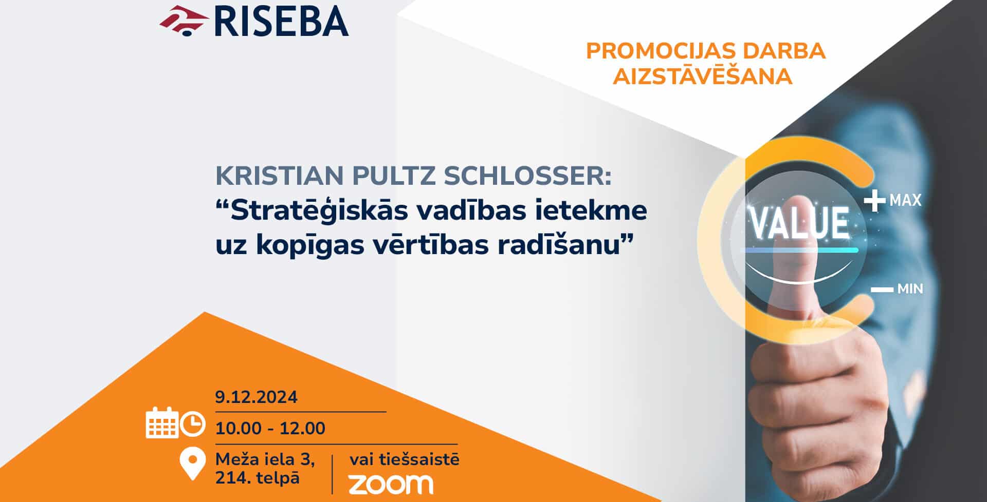 Kristian Pultz Schlosser doktordarba “Stratēģiskās vadības ietekme uz kopīgas vērtības radīšanu” aizstāvēšana.